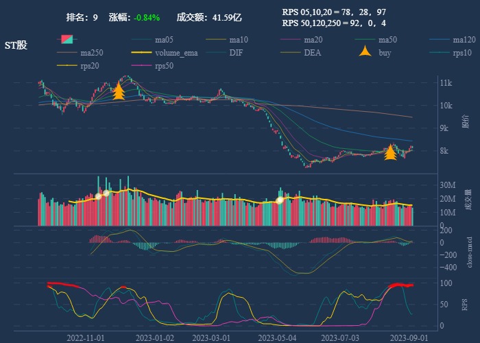 - 第一波行情 rps20 + 10日均线,第二波行情 rps50 + macd反转。