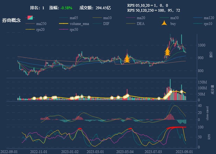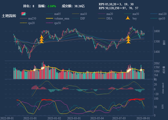 - 一线红:第一次买点出现后往往是顶峰,等回调,macd 反转,rps50 还一直红,第二次买点重现