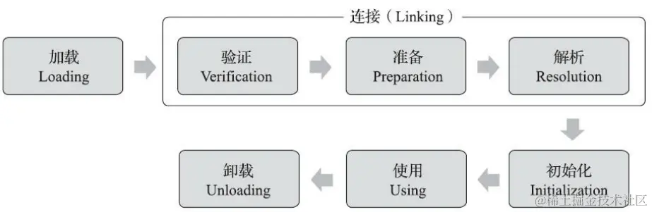 初始化 (Initialization)、使用(Using)和卸载(Unloading)七个阶段,