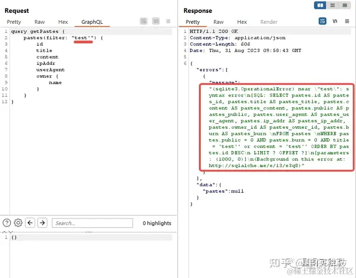 GraphQL API同样会可能存在SQL注入漏洞,可以对查询结构体中的一些参数进行SQL注入尝试。