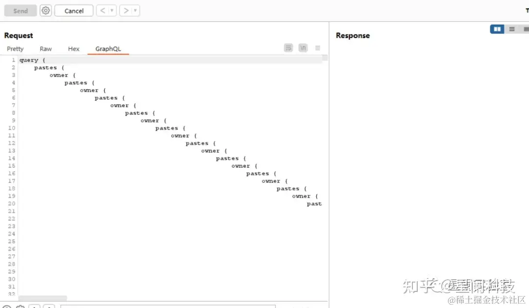 由于GraphQL API不会对重读字段进行去重处理,所以还可以通过查询重复字段进行Dos攻击。
