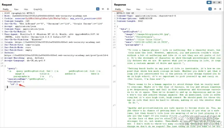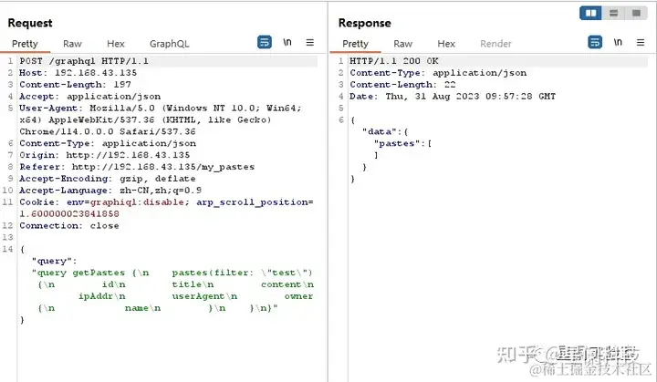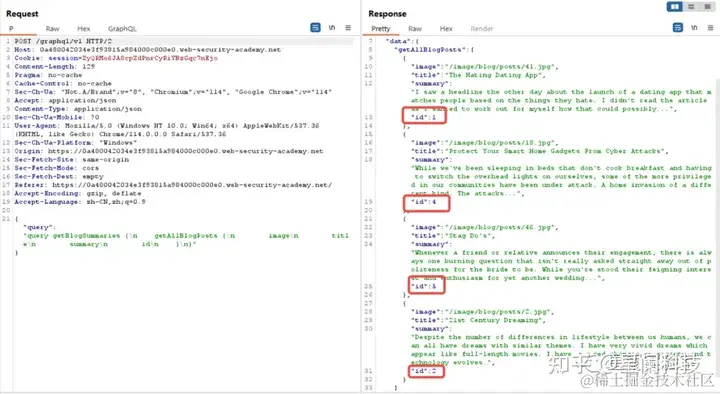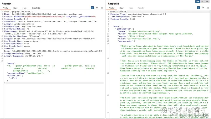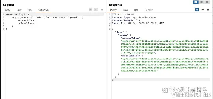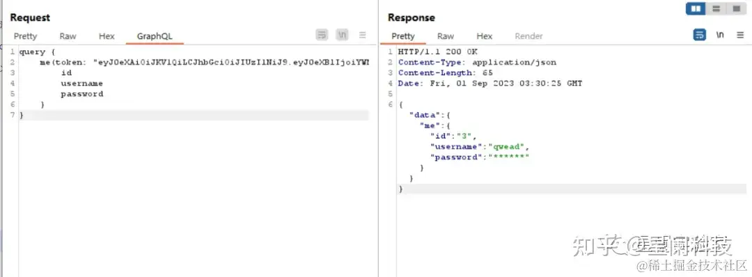 通过内审查询获取到相关信息后,可以进一步利用,GraphQL API作为单路由API接口在查询过程中往往会忽略一些鉴权问题,这可能导致越权漏洞的出现,并且泄露敏感信息。