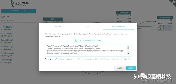 简单来说就是,GraphQL内查机制,通常是内部可用,通过内省的方法获得相关信息,如对象定义、接口参数等信息。一般查询前面带有双下划线的就表示内省的一部分,比如:__Schema, __Type, __TypeKind, __Field, __InputValue, __EnumValue, __Directive等,官方文档:graphql.org/learn/intro…