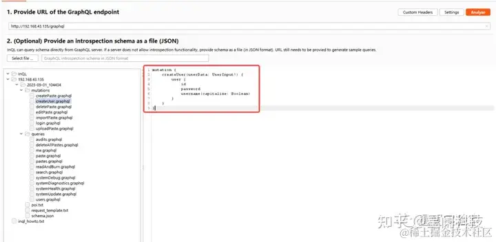 可以通过相关工具获取GraphQL API的数据结构,这里我们就发现了存在新建用户的操作。
