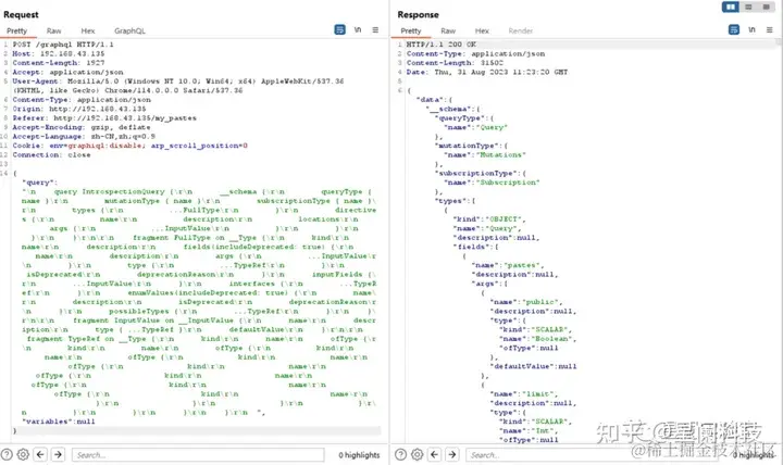 通过了解GraphQL的内省查询机制,其实我们可以发现在相关系统没修改默认配置的情况下,我们可以通过__schema 或者 __type 等来进行系统级别的查询,以获取服务器上定义的所有类型、字段、敏感信息等。