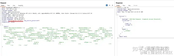 在GrapQL API中如果存在相关恶意输入保护机制,可以利用修改请求头参数进行绕过。