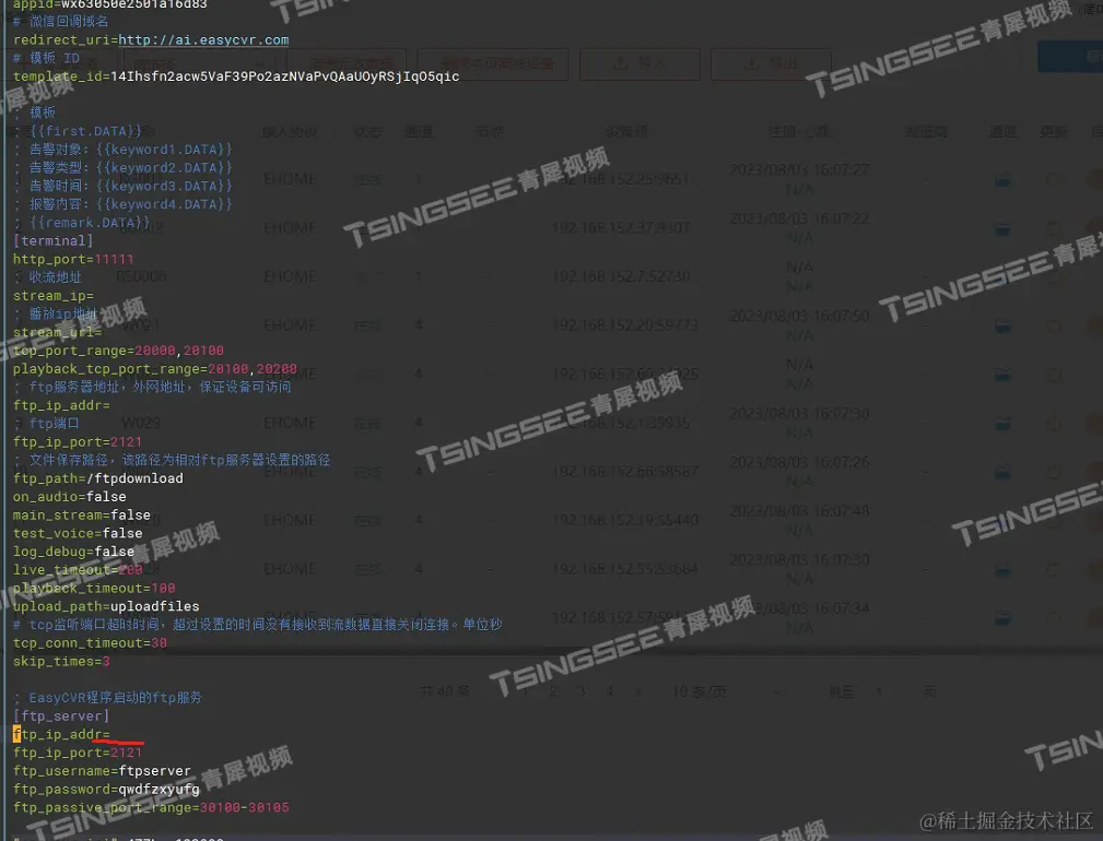 2)找出问题后,即可进入easycvr.ini文件中搜索这个ip进程查看,这个ip在easycvr.ini中ftp_ip_addr中出现了打印,随即保存该ip,并将其该ip删除即可。