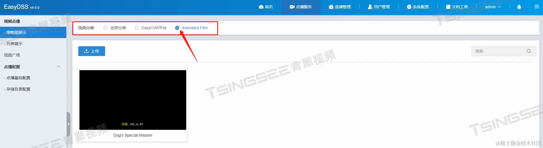 TSINGSEE青犀视频的EasyDSS平台具有点播文件分类展示方法,有两种实现方式可供用户自由选择,今天小编就带大家学习一下吧。