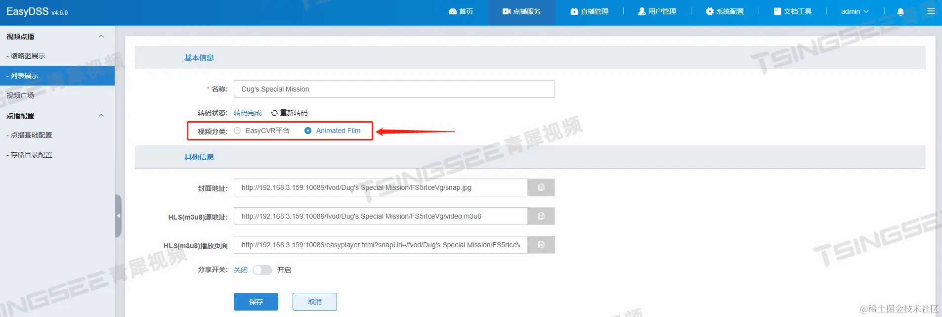 4)除此之外,还可在平台自定义配置封面地址,是否开启分享等。