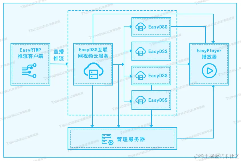 视频推拉流EasyDSS视频直播点播平台,集视频直播、点播、转码、管理、录像、检索、时移回看等功能于一体,可提供音视频采集、视频推拉流、播放H.265编码视频、存储、分发等视频能力服务。