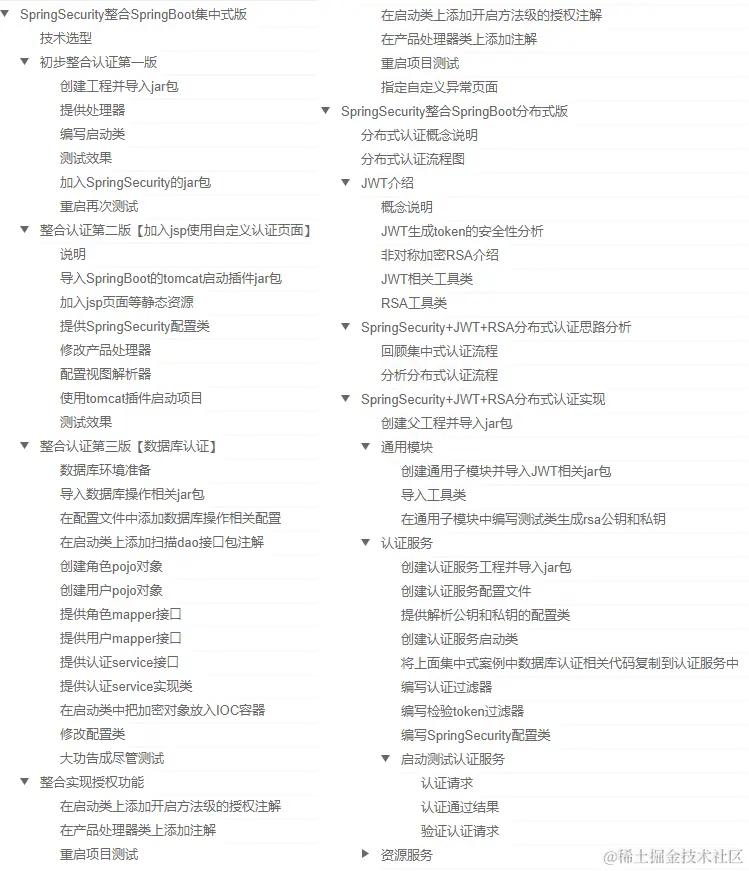 第三部分主要讲解SpringSecurity整合SpringBoot集中式版和分布式版,先来看看目录!