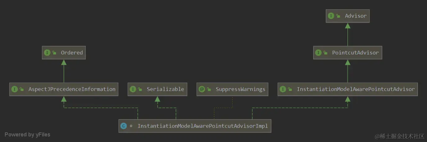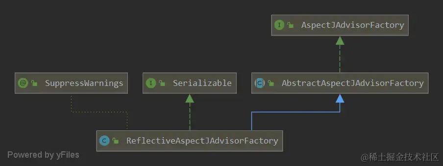 ReflectiveAspectJAdvisorFactory的类继承关系如图所示,核心关注判断切面类的逻辑。