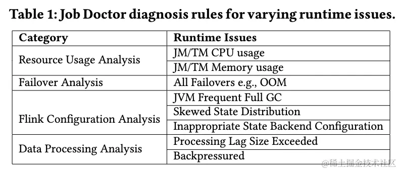 同时 StreamOps 实现了一套智能诊断(Job Doctor)系统,并提供了可视化平台供用户和运维人员分析使用。其内部主要涵盖了如下四种等类型的诊断规则:资源使用情况分析与建议、运行异常收集分析与建议、Flink 配置分析与建议、处理瓶颈情况分析与建议。用户可以进行自主检测,系统也会定期巡检,向用户发送警告并提供相应的处理建议。