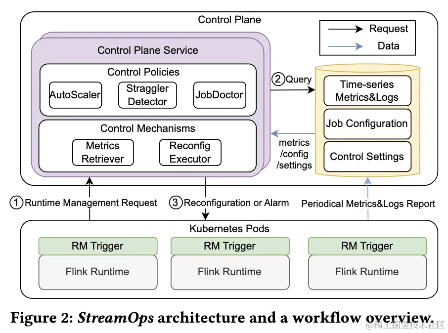 - 控制平面服务 (Control Plane Service) :可水平拓展的无状态服务来管理集群级别的流式作业,独立于流式作业部署以解耦控制平面和流式计算引擎获得更好的灵活性和拓展性。