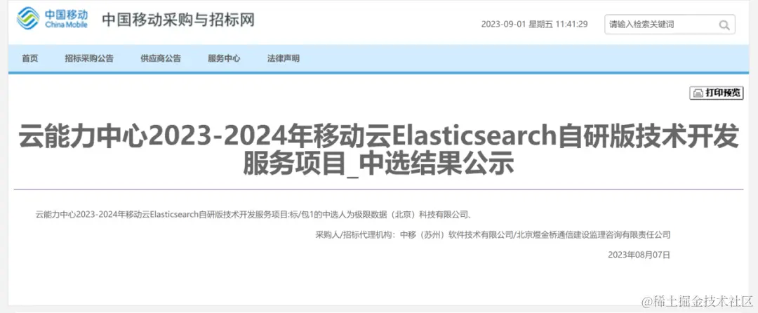 喜讯!极限科技再次中标中国移动云 Elasticsearch 自研版技术开发服务项目! 极限实验室 2023-09-05 91 阅读1分钟 喜讯!极限科技 再次中标 中国移动云 Elasticsearch 自研版技术开发服务项目! 近日,极限科技再次成功中标中国移动苏州研发中心 《云能力中心 2023—2024 年移动云 Elasticsearch 自研版技术开发服务项目》。实现了个性化搜索及聚合分析,更稳定可靠地支持万亿级数据规模,为移动云系统提供安全、稳定、可靠的快速检索和实时数据探索分析能力。