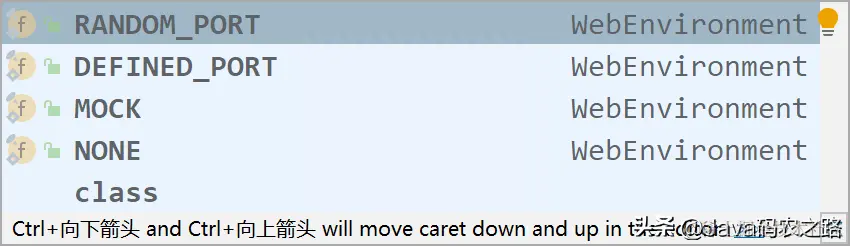 建议大家测试时使用RANDOM_PORT,避免代码中因为写死设定引发线上功能打包测试时由于端口冲突导致意外现象的出现。就是说你程序中写了用8080端口,结果线上环境8080端口被占用了,结果你代码中所有写的东西都要改,这就是写死代码的代价。现在你用随机端口就可以测试出来你有没有这种问题的隐患了。
