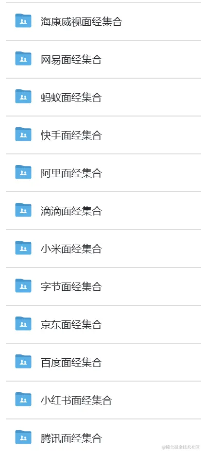 所以学长顺着网络整理了不少大厂的面经集合,回复企业名称即可获取!学长已经整理完毕的企业如下:
