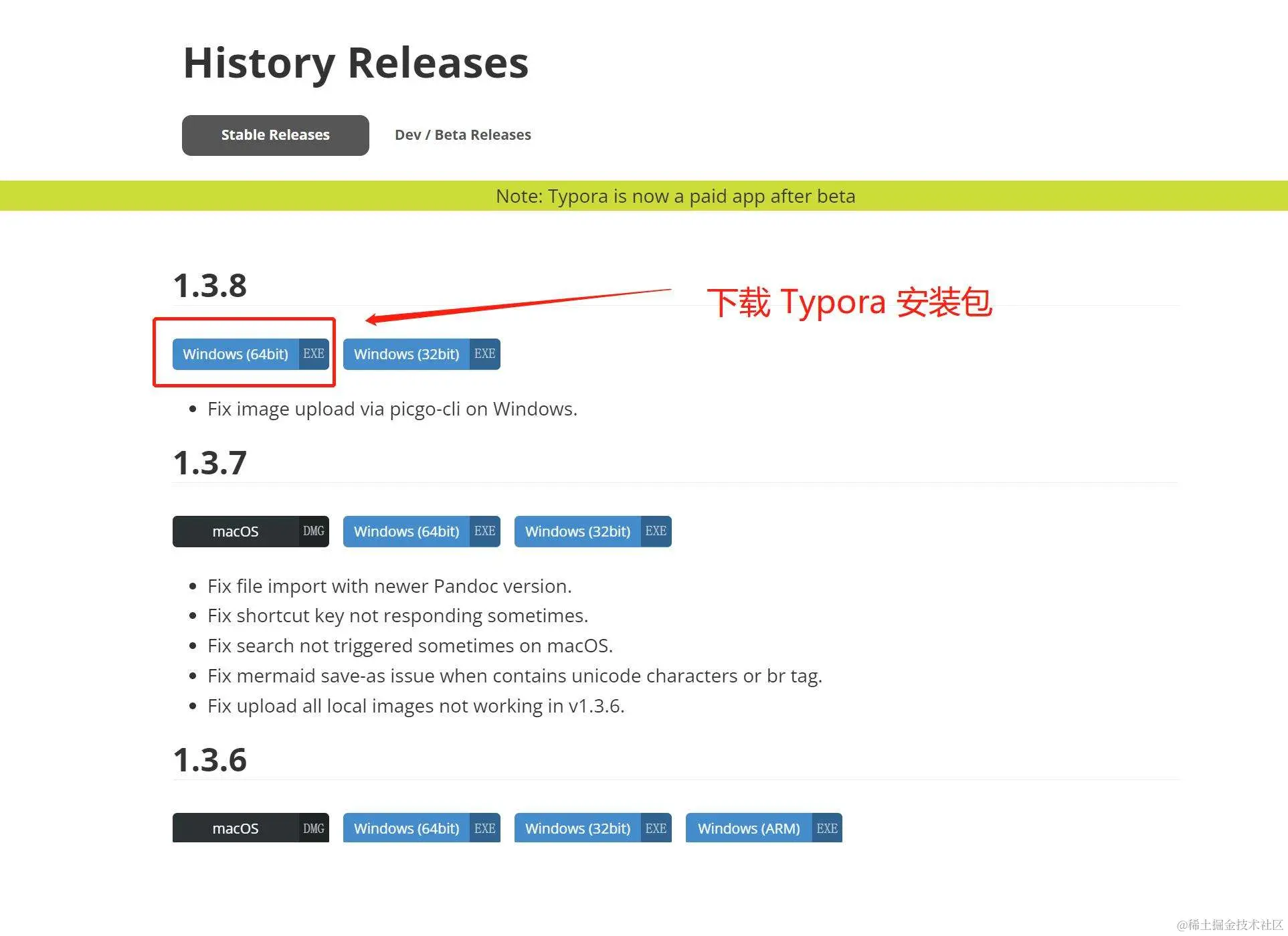 笔者在写这篇教程的时候,Typora 最新版本号为 1.3.8,通过如下链接下载 Typora,下载成功后,直接双击安装即可: