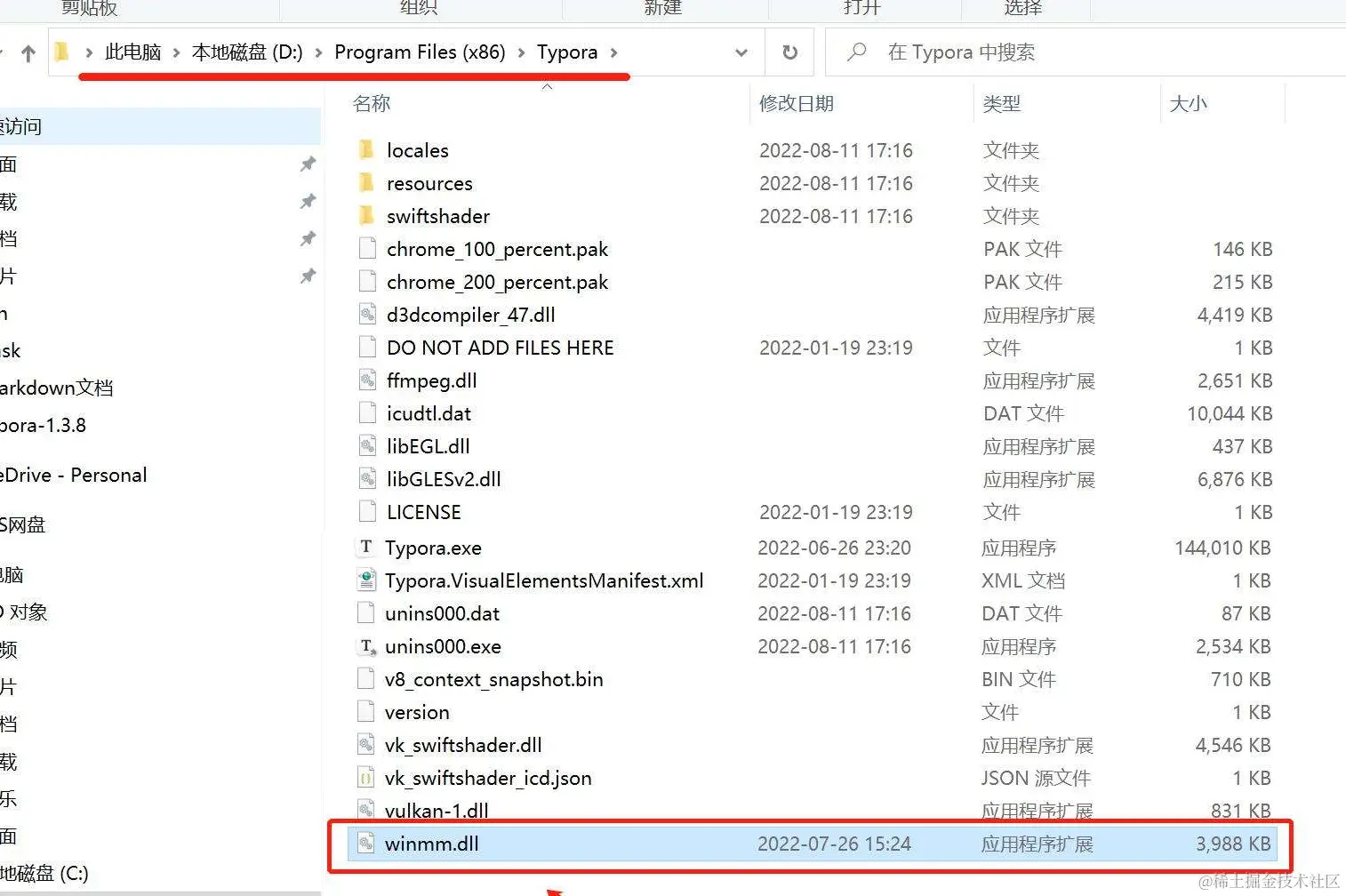 将网盘中的 winmm.dll 补丁复制到 Typora 安装根目录下: