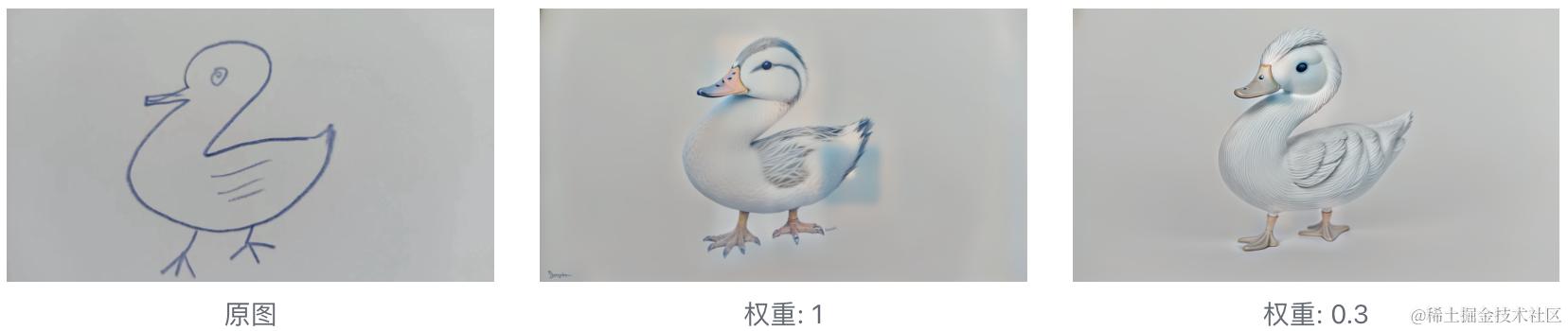 控制权重:降低控制权重,可以降低 ControlNet 的约束,让 Stable Diffusion 模型发挥更大的作用。