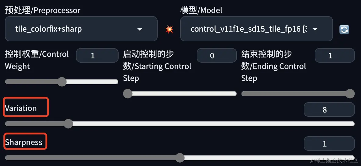 Sharpness 控制锐化程度,也就是线条的清晰程度。如果感觉生成的图片比较模糊,可以加大这个值。