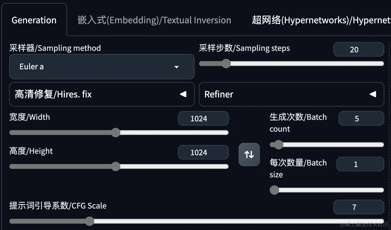 Stable Diffusion的参数一般使用默认的就可以。注意高度、宽度使用参考图的尺寸,否则可能被裁减或者变形。