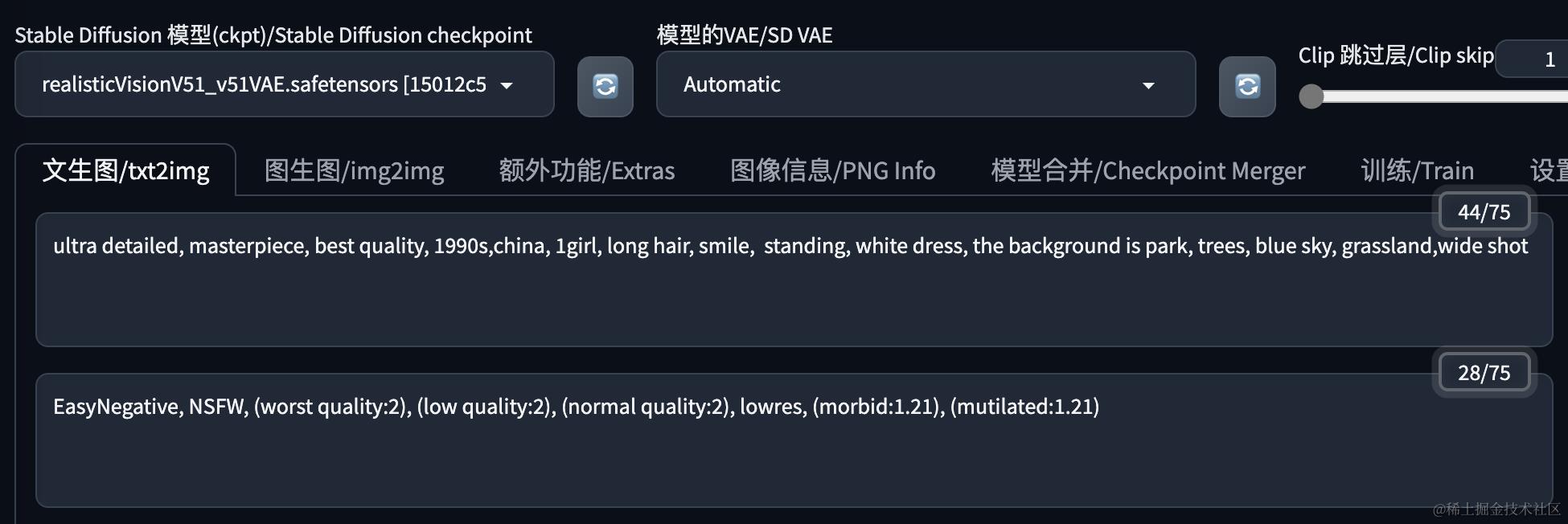 首先选择生图大模型,填写提示词。这里选择一个真实模型:realisticVisionV51 ,提示词要和参考图相匹配。