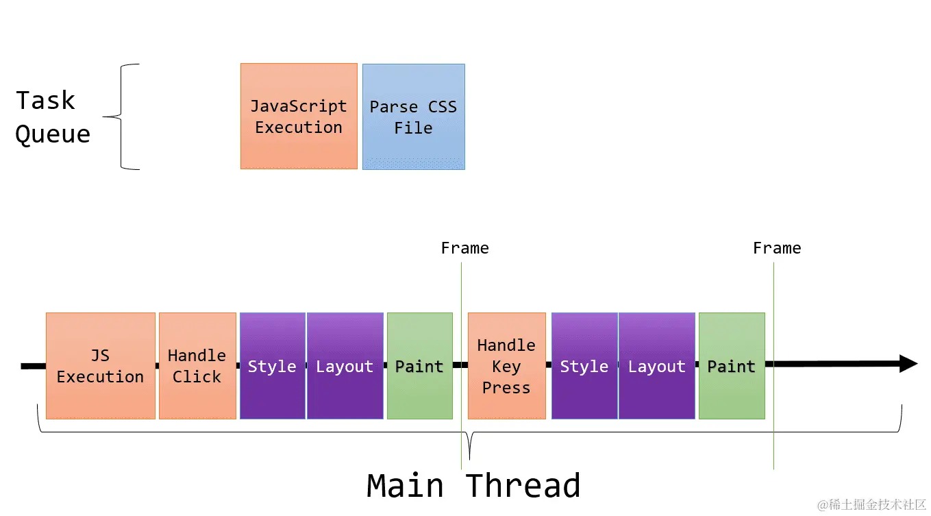 JavaScript在单线程环境中运行。虽然可以利用其他附加线程(例如通过WebWorker、ServiceWorker),但只有一个主线程,也称为UI线程。这个线程不仅负责执行开发人员编写的JavaScript代码(例如事件监听器)等任务,还负责渲染任务、解析CSS等任务。每当执行一个函数时,整个主线程都会在执行该函数时被阻塞,因为主线程一次只能运行一个任务。这是网页可能变得无响应的原因 - 主线程正在忙于执行某些逻辑。