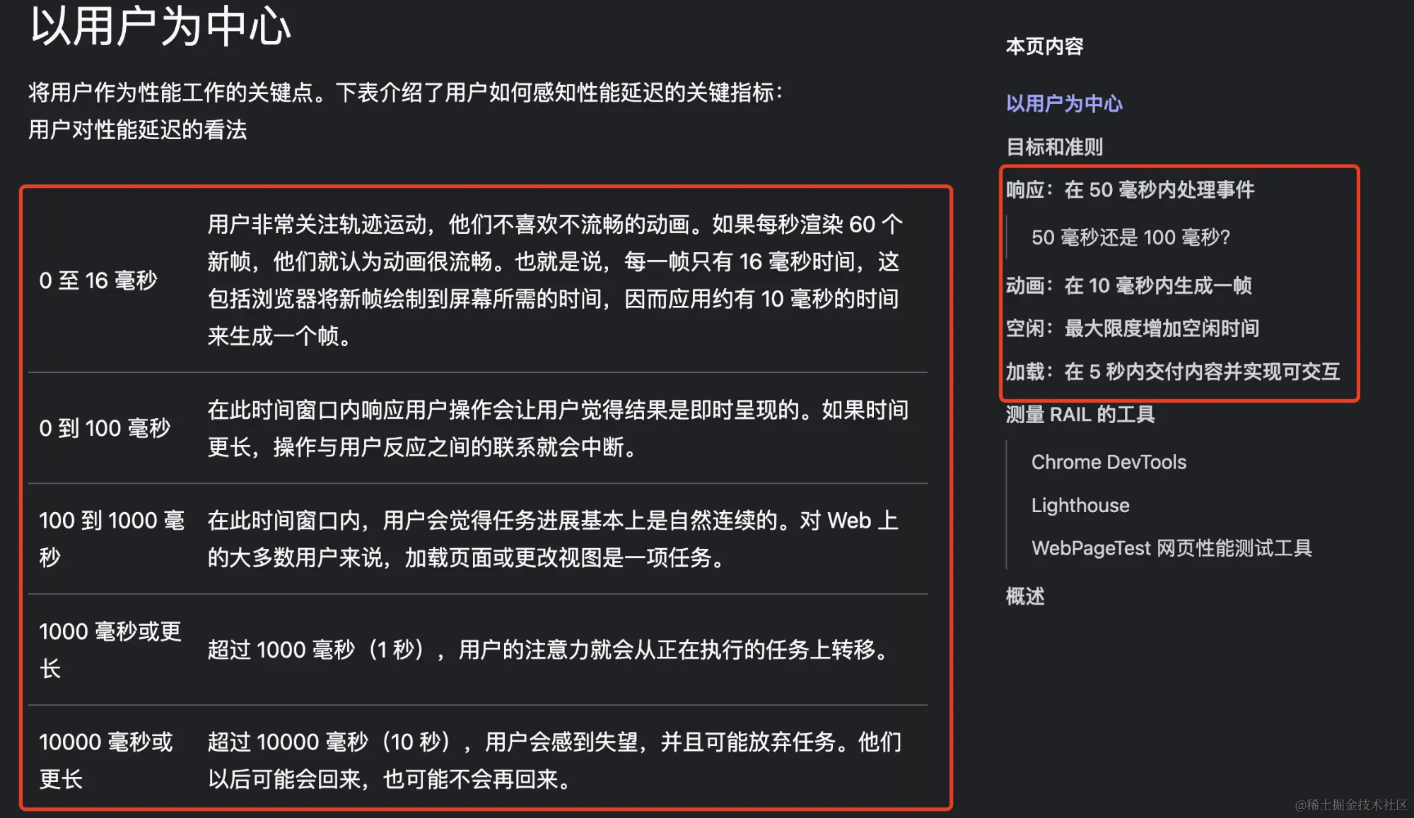之前我们在介绍浏览器性能指标时提到过RAIL - 在其中,我们可以看到哪些延迟在不同情况下是可以接受的,任务应该花费多少毫秒等等。