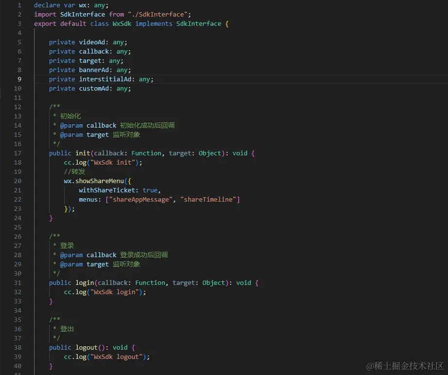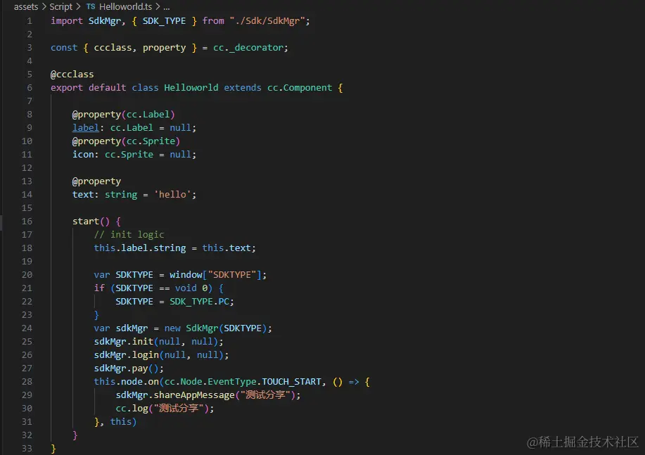 通过window["SDKTYPE"]去创建对应的Sdk。并且示例初始化、登陆、支付和分享接口。