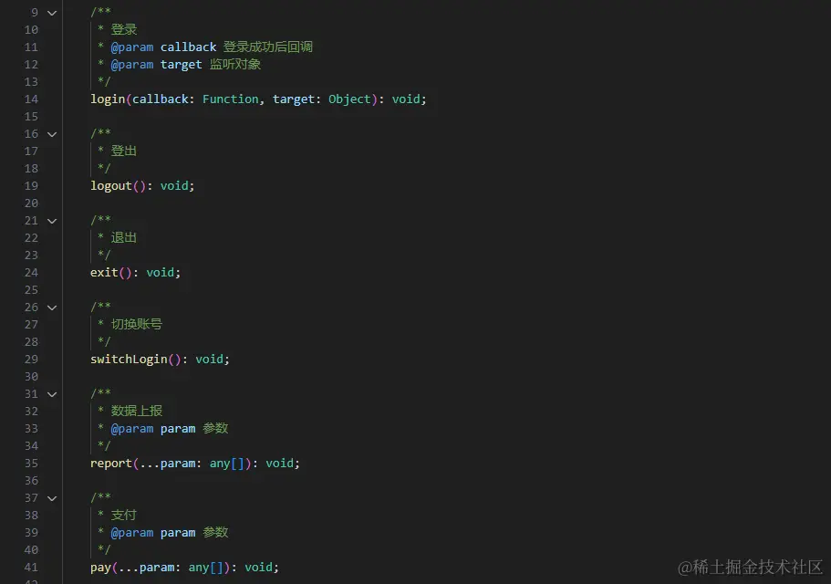 定义渠道基本接口,包括登陆、登出、退出、切换账号、数据上报、支付接口。