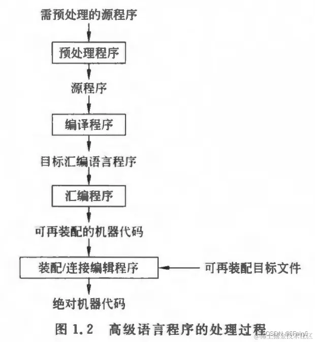 第一步:用一个编译程序把高级语言翻译成机器语言程序;(下图1.2处理过程)