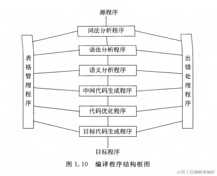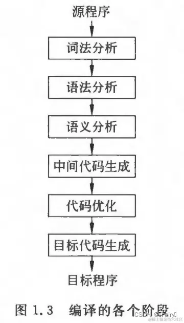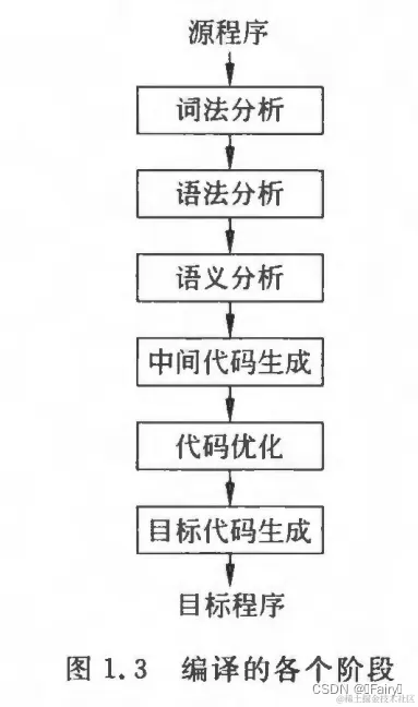 综上,给出编译的各个阶段(有时把语义分析和中间代码生成合并):