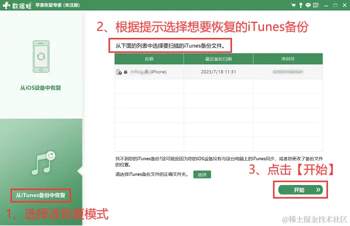 itunes备份怎么恢复?如果只是想恢复部分iTunes备份中的数据,小编建议尝试使用专业的数据恢复软件——数据蛙苹果恢复专家。通过这款软件,我们可以单独将备份中的数据提取出来并还原到电脑上,软件操作简单恢复率还高。