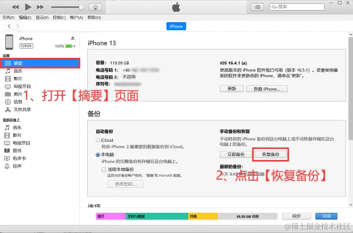 我们可以直接通过iTunes工具来恢复所需备份,**但要注意的是:iTunes属于整机备份、整机恢复,在恢复itunes备份的时候手机上的数据会被全部覆盖。**以下是整机恢复备份的具体操作步骤: