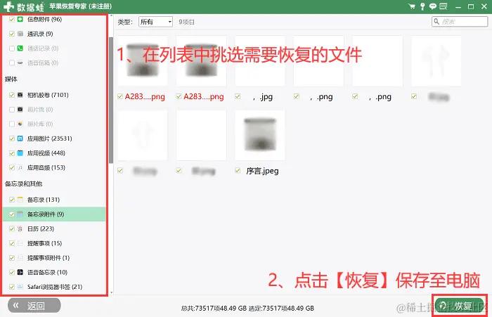 如果担心手机数据被覆盖,小编推荐大家使用数据蛙苹果恢复专家,它能够让您更加有选择性地还原手机数据。另外小编在这里提醒大家,在恢复iPhone备份前请及时备份好数据,防止数据意外丢失。