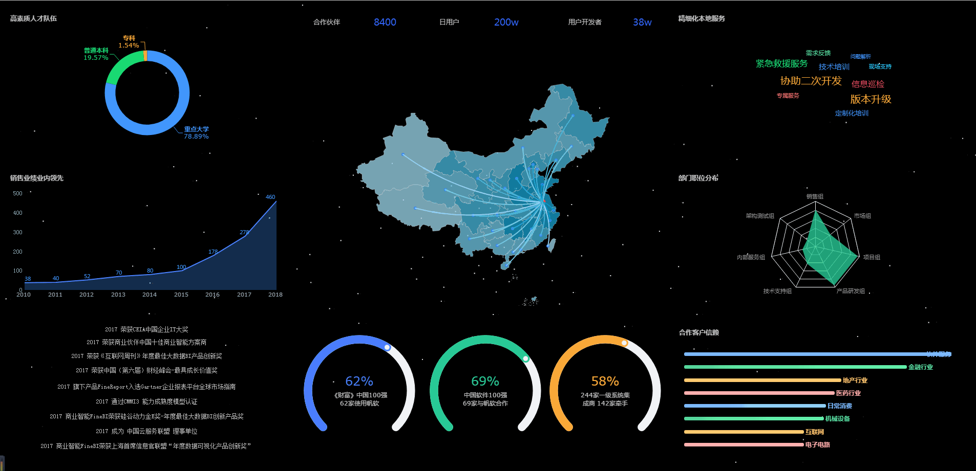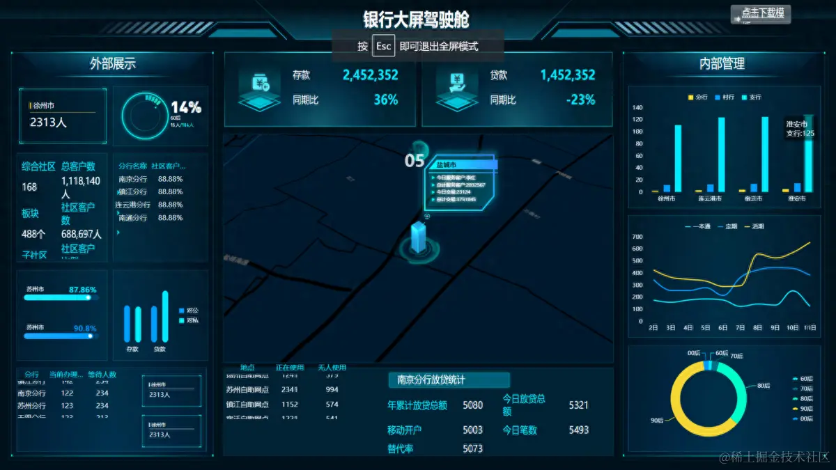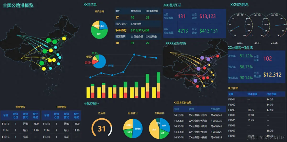 配色问题老李这次就不谈了,之前的文章已经分享过大屏色彩如何选择了,这次老李着重和大家谈一谈大屏动效的问题,好的动态效果是能直接提升一张大屏的逼格的,话不多说,直接上图: