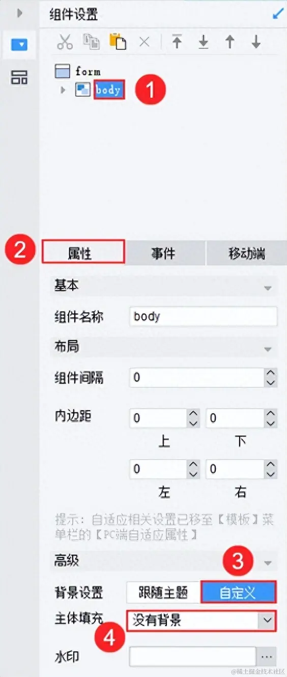 首先,以FineReport为例,将 body 背景设置为「自定义>没有背景」。