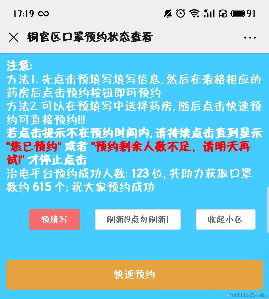 铜陵口罩预约第三方平台 治电小白菜 2023-09-06 53 阅读1分钟 针对铜官区的网站, 分析了三分钟, 了解了相关接口请求原理, 为了方便自己的快速预约, 做了个自己的平台, 可以直接调用最终接口, 跳过他的页面渲染, 数据获取, 数据验证 Vue用起来确实快, 不亏是快速开发利器