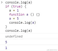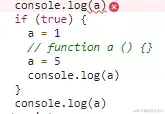在if 中的a=1语句之前, 我们可以看到函数声明已经提升了, 此时if作用域里a为函数