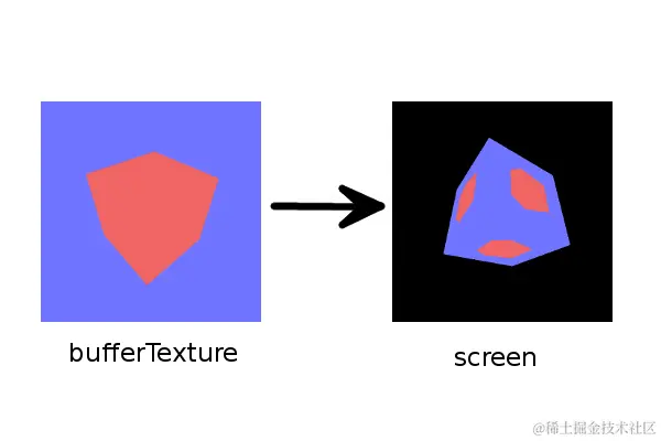 现在我们要把它渲染到纹理上。我们需要做的就是创建一个类似于上述基本实现,并将我们的对象添加到其中。bufferScene