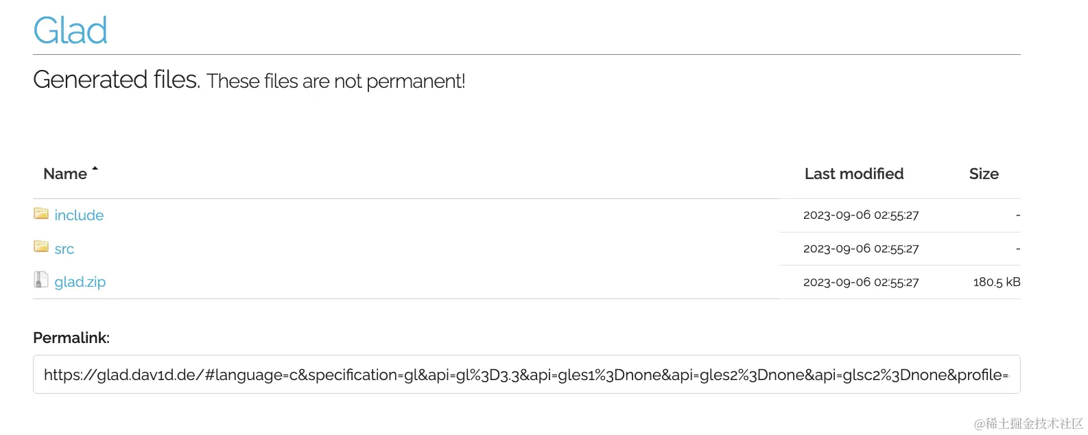 选择Generate a loader,点击generate,下载glad.zip,里面有头文件和cpp源码