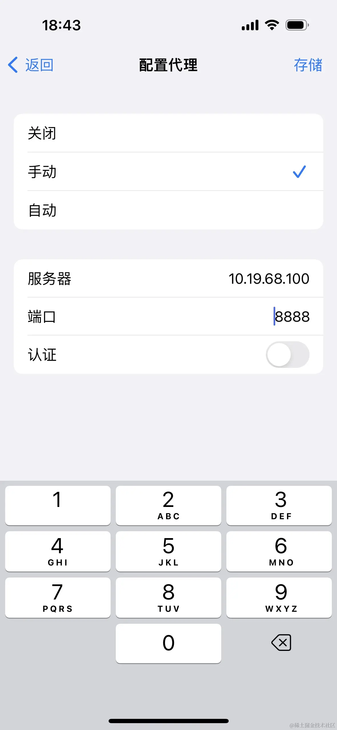 选择手动代理,并在服务器选项输入电脑的IP地址,在端口号输入8888,然后点击存储。一般会弹出什么证书信任什么的,统统点确认信任就好了。