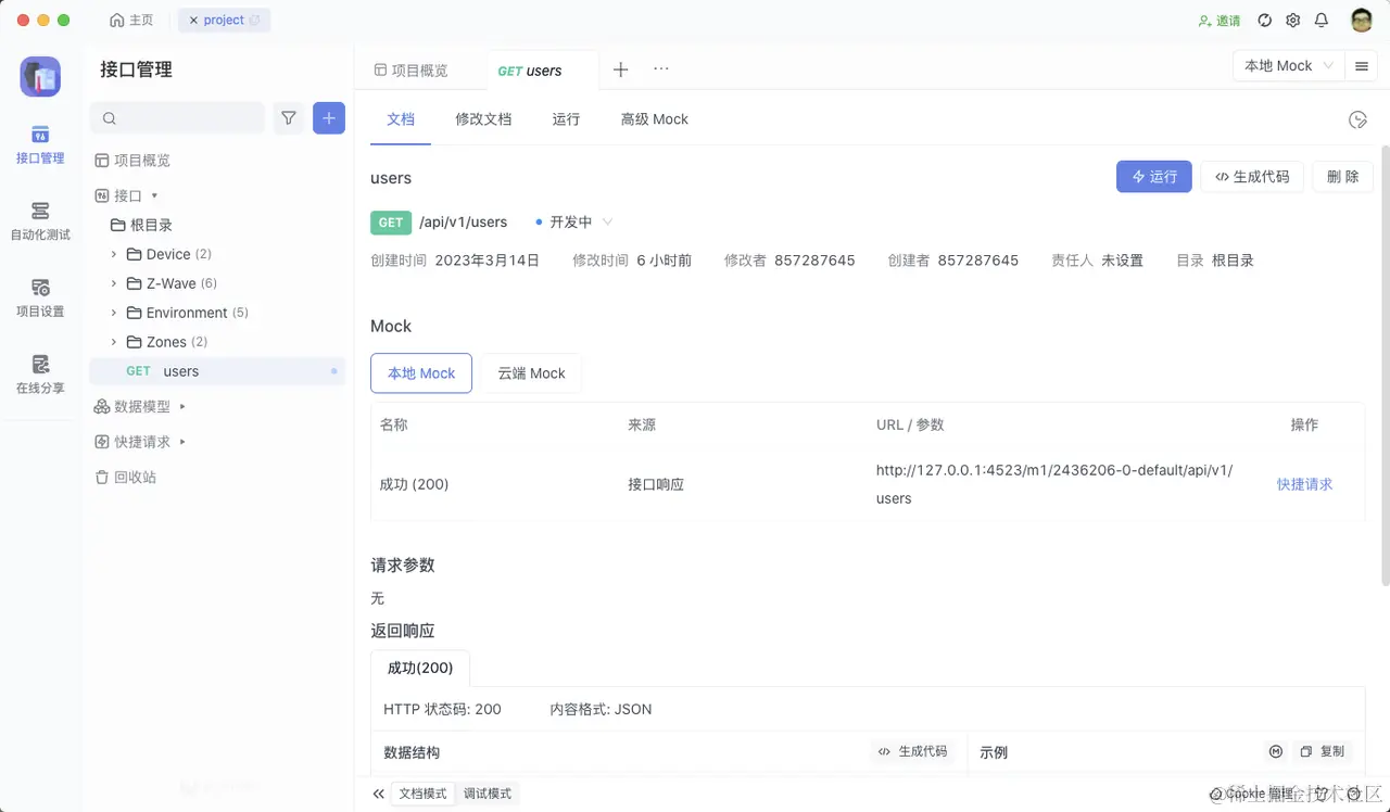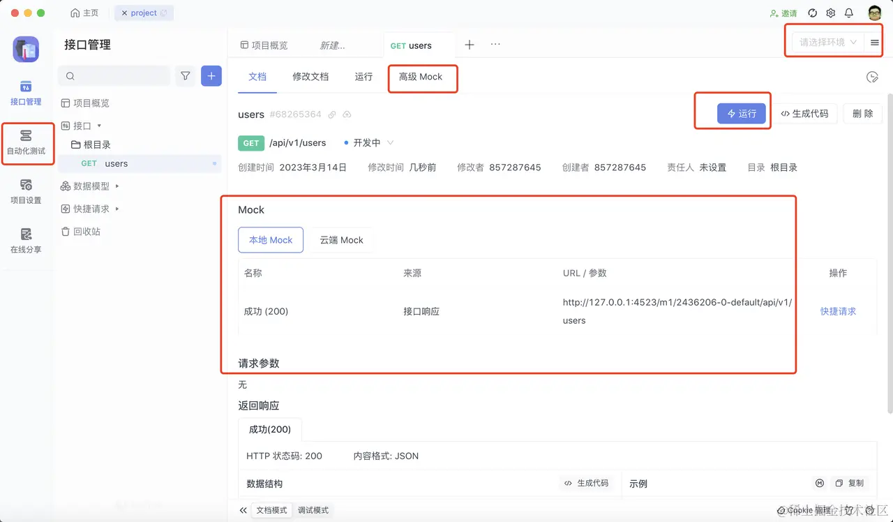 如果是本地环境,我们还可以使用 Apifox Mock 功能