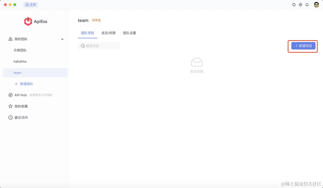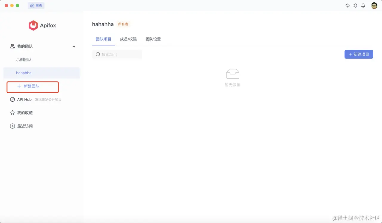 接口的开发离不开整个团队,所以我们在 Apifox 中可以先创建一个属于你们自己的团队~