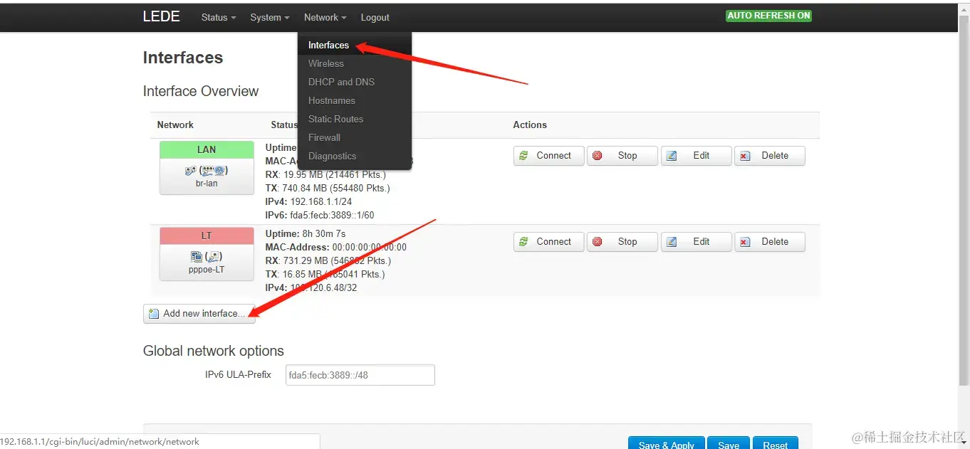 然后进入interface界面, 点击添加接口