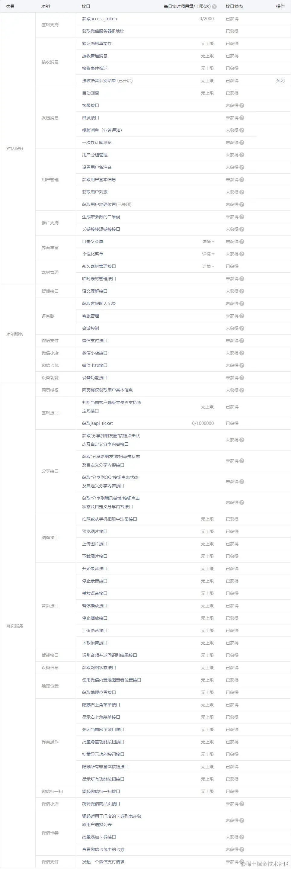 个人公众号接口权限记录