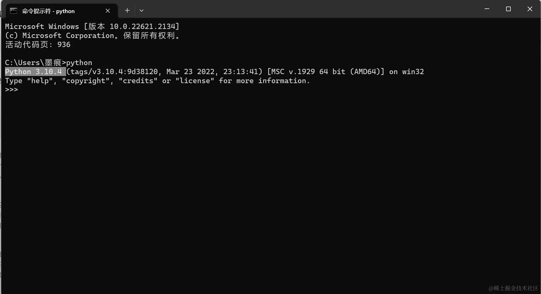 下载完成后,打开进行配置,最后等待安装。最后再cmd里面输入一下“python”检查一下是否可以正常运行(出现版本,如我这里出现了python 3.10.4)就可以了。